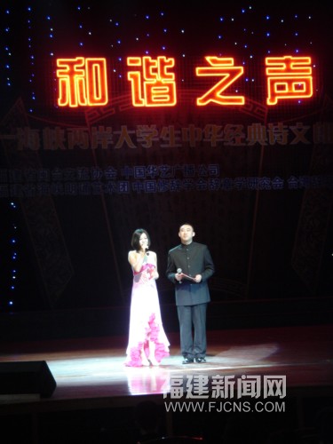 福建新聞網福州11月29日電(沈靜)悠悠民樂、朗朗誦讀,“就是那一只蟋蟀,在《唐風·蟋蟀》里唱過,在《古詩十九首》里唱過,在花木蘭的織機旁唱過,在姜夔的詞里唱過”,二十九日晚,“和諧之聲”——首屆海峽兩岸大學生中華經典詩文朗誦大賽決賽暨頒獎晚會在福州大戲院隆重舉行,來自臺灣臺北大學的葉士銘和來自福建師范大學的趙玉以精彩的表現在十位選手中脫穎而出,獲得了一等獎,福建師范大學臺灣籍學生黃懿鳳、福建中醫學院臺灣籍學生張力友等獲得二等獎,臺灣臺北大學林芷卉、臺灣開南大學楊玉鳳等獲得三等獎。