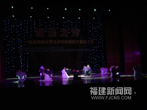 在決賽晚會上,十位兩岸大學生選手先后上臺朗誦了《滿江紅》、《琵琶行》、《春江花月夜》等古典詩詞名篇,其中臺灣選手更是將這些口耳相傳的詩詞名篇演繹得如夢如幻,他們聲情并茂的表演獲得了現場觀眾的熱烈反響,臺上臺下唱和相應,共誦經典,臺灣開南大學華語文教學研究所的張娣明助教與她的三位學生作為特邀嘉賓表演了配樂舞蹈詩朗誦《離》,翩翩的舞蹈、如詩般的誦讀、悠揚的中國古樂,營造出獨特的意境。