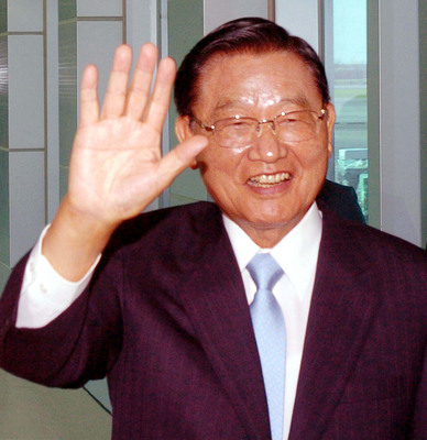 臺灣海基會董事長江丙坤(右)率代表團于28日8時30分許由桃園機場乘機飛往重慶,將與海協會會長陳云林舉行兩會恢復制度化協商后的第五次領導人會談。