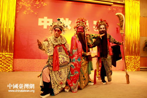 “2010海外臺(tái)商安徽行”黃山中秋晚宴上,由當(dāng)?shù)鼗談⊙輪T表演的傳統(tǒng)徽劇節(jié)目《水淹七軍》(中國(guó)臺(tái)灣網(wǎng) 董憲超 攝)