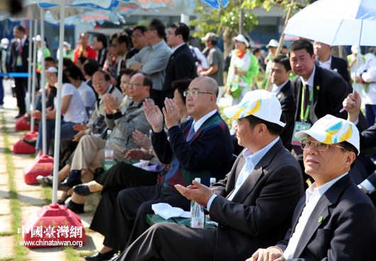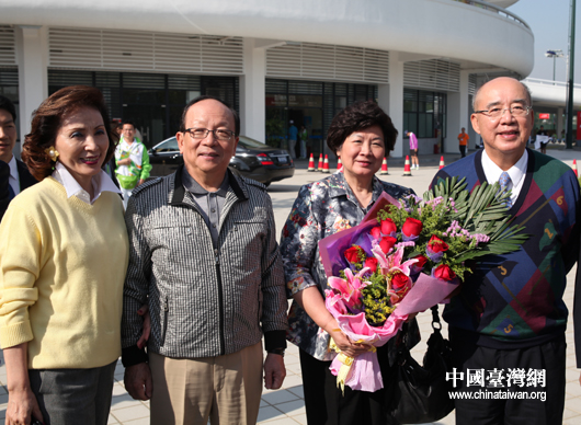 吳伯雄夫婦和蔣孝嚴夫婦一行13日來到廣東奧林匹克網球中心觀看中華臺北女子網球隊的團體賽首戰(中國臺灣網 鐘寶華 攝)