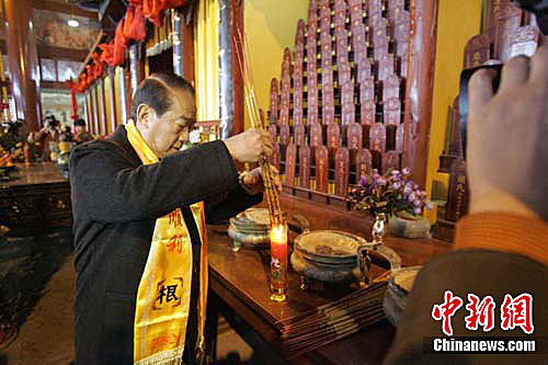 宋楚瑜在五臺山參觀了普壽寺的天王殿、大雄寶殿、法堂,并于大殿前上香祈福:國泰民安、風調雨順。
