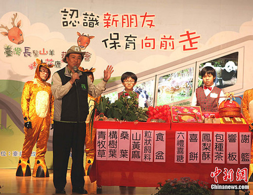 臺北市副市長邱文祥說,大熊貓“團團”和“圓圓”來到臺北,給臺灣人民帶來了很多歡樂,希望長鬃山羊和梅花鹿也能在大陸百年好合、快樂生活。