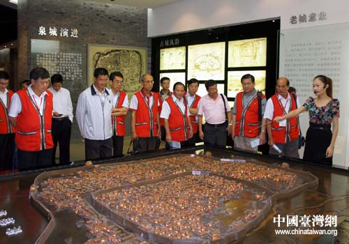上午,訪問團在山東省臺辦副巡視員曹曉武、濟南市臺辦副主任羅國金陪同下,先后參觀了濟南市城市規劃展覽館,訪問了濟南高新技術產業開發區,參觀了齊魯軟件園,并游覽了濟南泉城廣場。