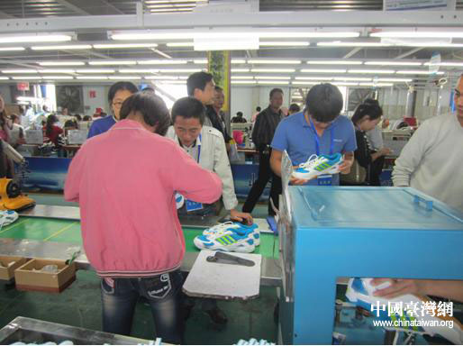 采訪團一行參觀扶溝寶昌鞋業生產車間。圖片來源:周口臺辦