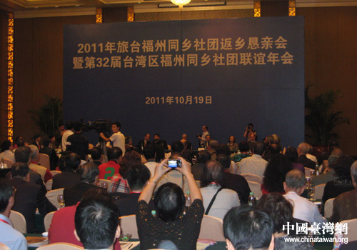中國臺灣網10月20日福州消息 19日下午,“2011年旅臺福州同鄉社團返鄉懇親會暨第32屆臺灣區福州同鄉社團聯誼年會”在福州香格里拉大酒店福州廳正式拉開帷幕。來自臺灣21個旅臺福州同鄉社團的155名福州籍臺灣鄉親參會,臺灣肥料公司董事長鐘榮吉,民意代表曹爾忠,馬祖縣縣長楊綏生,臺灣彰化師范大學校長張植珊等福州籍臺灣知名人士應邀參會。