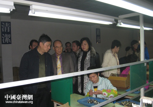 閻鋼軍率調研組一行在聽完吉安市臺辦的工作匯報后,先后深入吉水、吉安、安福等縣調研,先后走訪了鴻遠實業、裕興制鞋(吉水)有限公司、浩漢電子、華憶科技、新名婚紗、裕元制鞋(安福)有限公司、巨揚首飾有限公司等臺資企業,看望臺干并與之座談。每到一處閻鋼軍都祥細了解臺資企業的生產生活情況及面臨的困難和問題,叮囑陪同調研的當地領導和相關部門領導,要多關心支持臺資企業,做好服務。