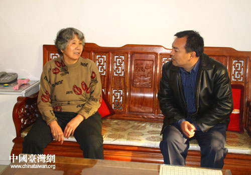 桓臺(tái)縣臺(tái)辦主任薛偉與臺(tái)屬徐素英親切交談。(圖片來(lái)源:桓臺(tái)縣臺(tái)辦)