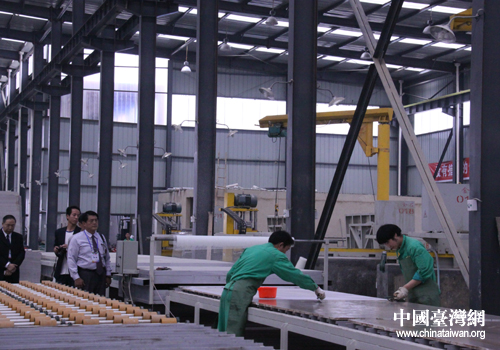 臺灣嘉賓參觀石材加工工藝。(貴陽市臺辦 胡珊珊 攝)