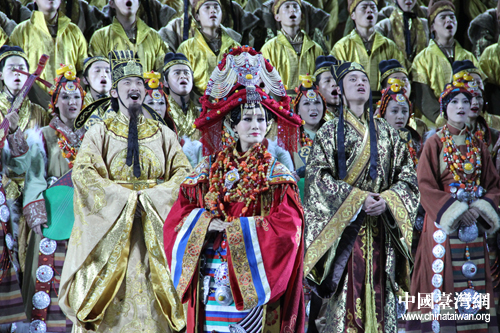 中國臺灣網(wǎng)10月11日北京消息 10日下午,大型史詩音樂劇《文成公主》在國家大劇院首演。男女主角文成公主和松贊干布由著名青年歌唱家譚晶和藏族歌手四郎貢布擔綱。