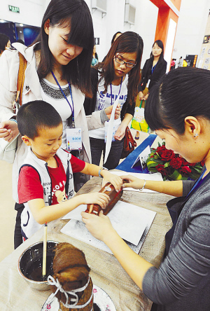 讀者體驗(yàn)傳統(tǒng)雕版印刷技藝。(余萍 攝)