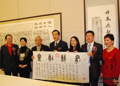 中國臺灣網(wǎng)3月28日北京消息 由全國政協(xié)書畫室、中國書畫收藏家協(xié)會主辦的“兩岸同根,傳承文化——劉藝、蘇士澍愛心捐助書法展”昨日上午在全國政協(xié)禮堂隆重舉行;顒庸舱钩鰟⑺嚒⑻K士澍兩位當代著名書法家作品80余幅。同時,兩位名家還當場向臺灣省花蓮縣秀林鄉(xiāng)捐贈人民幣300萬元籌建“愛心圖書館”。原全國政協(xié)副主席、政協(xié)書畫室主任張思卿,海峽兩岸關系協(xié)會副會長王在希,臺灣地區(qū)少數(shù)民族民意代表高金素梅等出席活動。