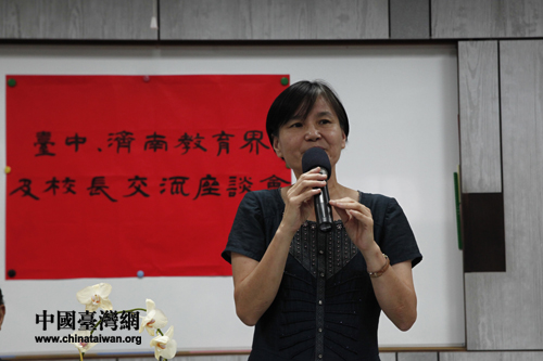 霧峰小學(xué)校長(zhǎng)許慰敏向參訪團(tuán)介紹學(xué)校概況(中國(guó)臺(tái)灣網(wǎng) 邢同林 攝)