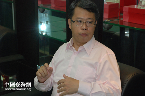 臺(tái)灣中華科技大學(xué)藝術(shù)類專任講師、臺(tái)灣畫家蔣麟接受本網(wǎng)記者專訪(中國臺(tái)灣網(wǎng) 李徽 攝 )