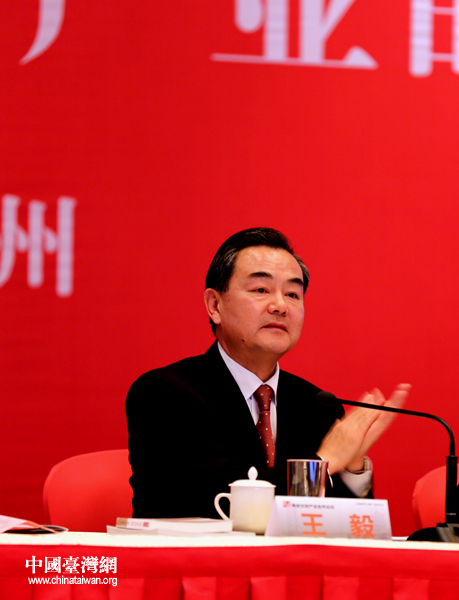 中臺辦、國臺辦主任王毅在論壇致辭時表示,探討文創產業的發展和合作,就是要探討產業與文化的相互關系以及如何把兩者更好地結合起來。(中國臺灣網 李徽 攝)