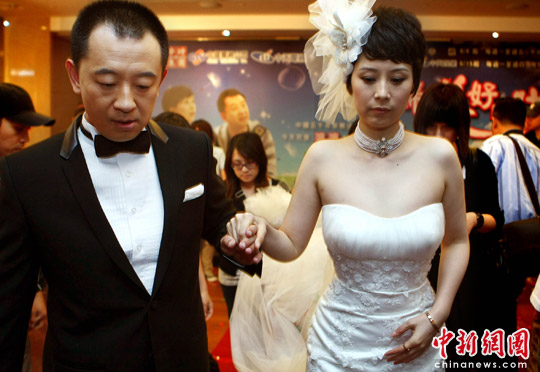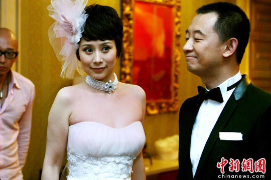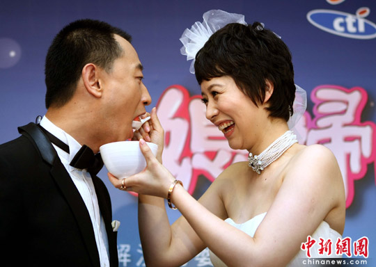 6月7日相關(guān)單位在臺(tái)北舉行記者會(huì),劇中毛豆豆扮演者海清、余味扮演者黃海波身著結(jié)婚禮服到場與記者、影迷互動(dòng),會(huì)上“小兩口”相互喂食的甜蜜情節(jié),將活動(dòng)推向高潮。中新社記者 宋吉河 攝