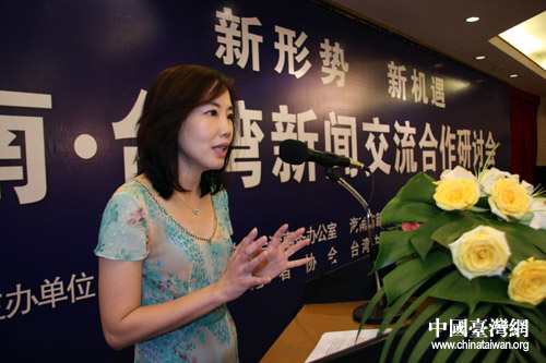 臺(tái)灣知名評(píng)論員尹乃菁通過(guò)央視節(jié)目而被大陸觀眾所熟知,對(duì)于兩岸新聞媒體互設(shè)常設(shè)機(jī)構(gòu)的呼聲感同身受。她認(rèn)為:解決兩岸新聞交流不對(duì)等的問(wèn)題,首先要解決媒體常駐問(wèn)題,唯有如此,記者才能更好地積累人脈、熟悉當(dāng)?shù)厍闆r、深入構(gòu)思選題,提高新聞質(zhì)量。她還建議:在兩岸電視節(jié)目沒(méi)有在對(duì)岸全面落地前,共同合拍電視劇以及合作綜藝節(jié)目、談話(huà)性節(jié)目或可成為兩岸媒體人積極推動(dòng)的方向,運(yùn)用電視劇在情感影響上的優(yōu)勢(shì),明星、名嘴效應(yīng),密切兩岸民眾的了解與共鳴。