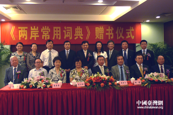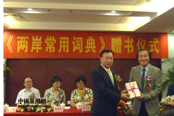 《兩岸常用詞典》贈(zèng)書儀式4日在京舉行,教育部、中央臺辦、新聞出版總署等部門相關(guān)負(fù)責(zé)人以及參加兩岸合編中華語文工具書的專家學(xué)者出席了贈(zèng)書儀式(中國臺灣網(wǎng) 李徽 攝)