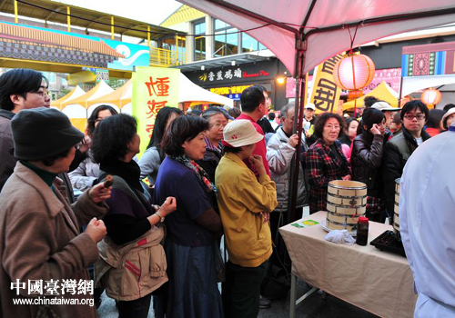 首屆“高雄市燈會藝術節暨北京特色周”,臺灣民眾排隊購買北京特色小吃。(資料圖片)