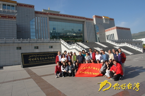 臺灣嘉賓在藏醫藥文化博物館門前合影(你好臺灣網 圖)