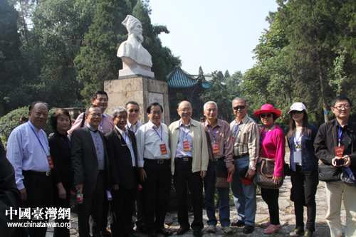 100多位兩岸專家學(xué)者與產(chǎn)業(yè)界人士,8日來(lái)到湖北黃岡祭拜李時(shí)珍,圖為祭拜后臺(tái)灣嘉賓在醫(yī)圣墓前合影。(中國(guó)臺(tái)灣網(wǎng) 楊麗 攝)