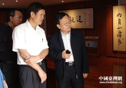 撫順市委副書記喻國偉一行在參觀鄉(xiāng)林集團(tuán)大草嶺企業(yè)文化。(圖片來源:撫順市臺辦)
