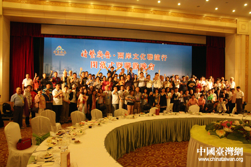 聯歡會結束時,全體兩岸嘉賓一起涌上臺前留下難忘合影。(中國臺灣網 蕪同 攝)