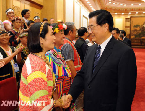 胡錦濤指出,臺灣少數民族同胞是中華民族大家庭的重要成員。長期以來,你們為抵御外來侵略、捍衛民族尊嚴進行了不屈不撓的斗爭,為中華民族的發展和臺灣的開發建設作出了不懈努力,為推動兩岸關系的改善和發展作出了重要貢獻。你們以自己的行動證明,兩岸同胞和衷共濟、齊心協力,就一定能保護好、建設好我們的共同家園,開創兩岸關系和平發展的新局面。