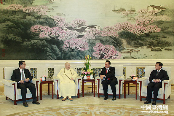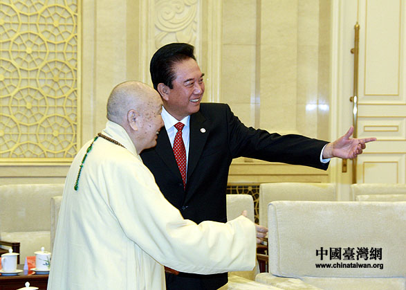 4月23日上午,陳云林在北京會見臺灣中臺禪寺開山方丈惟覺長老。(中國臺灣網 鐘寶華 攝)