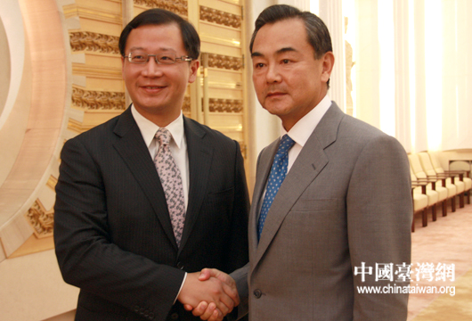 中國臺灣網9月15日北京消息 15日下午,中共中央臺辦、國務院臺辦主任王毅在北京人民大會堂會見了臺灣桃園縣縣長吳志揚一行。(中國臺灣網 田云鵬 攝)
