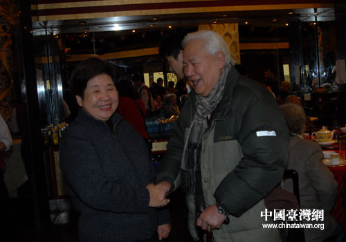 團拜會前,林明月與老同志們一一握手,親切交談。老臺胞們也互致新春問候,暢談兩岸關系。