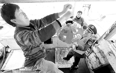22日,停靠在福建泉州泉港區(qū)肖厝碼頭的臺(tái)輪“和發(fā)財(cái)6號(hào)”上其樂融融,當(dāng)?shù)厣掣襁叿琅沙鏊俦c船上臺(tái)胞一起動(dòng)手掛花燈、做元宵,喜迎元宵佳節(jié)。(周電彬 夏仰峰 攝影報(bào)道)