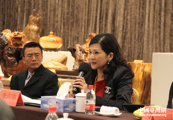 除了經濟、科技的交流,文化的傳承和發揚成為此次座談會的一個熱點。北京晟蓮升文化藝術發展有限公司董事長陳燕妮女士(臺籍)表示,臺灣在弘揚中華傳統文化方面一直比大陸要更進一步,希望通過兩岸企業界人士多交流,多合作,大家優勢互補,搭建一個文化平臺,更好的弘揚中華傳統文化。