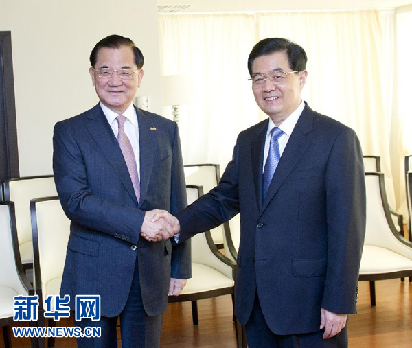9月7日,中共中央總書記胡錦濤在俄羅斯符拉迪沃斯托克會見中國國民黨榮譽主席連戰。 新華社記者王曄攝
