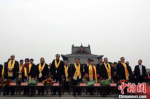 4月5日上午,中國(guó)·洪洞二十一屆大槐樹尋根祭祖大典在山西洪洞大槐樹尋根祭祖園舉行,來自海內(nèi)外的萬(wàn)余名華人匯聚于此,虔誠(chéng)祭祖。中新社發(fā) 張?jiān)?攝