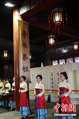 中新社洪洞4月5日電(張?jiān)?4月5日是中國(guó)人的清明節(jié)。上午在18聲禮炮中,中國(guó)?洪洞二十一屆大槐樹尋根祭祖大典在山西洪洞大槐樹尋根祭祖園舉行。親民黨主席宋楚瑜參加大典,與來自海內(nèi)外的萬(wàn)余炎黃子孫匯聚于此,虔誠(chéng)祭祖。