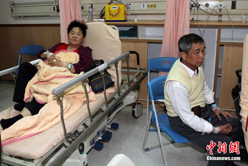 4月27日,臺灣阿里山景區(qū)發(fā)生小火車翻車事故,多名傷者送往嘉義基督教醫(yī)院,受到驚嚇及輕傷的旅客在觀察室接受治療。陳毅偉 攝 圖片來源:“中央社”
