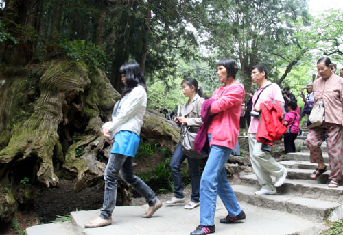 阿里山森林鐵路神木支線小火車27日發生翻覆意外,28日仍有許多大陸旅游團前往阿里山森林游樂區旅游。 圖片來源:“中央社”