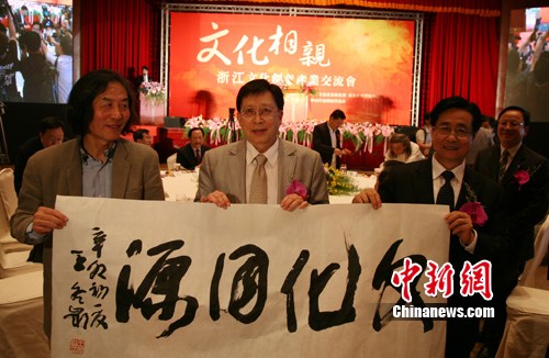 趙洪祝表示,沒有文化的經(jīng)濟是沒有生命力的。浙江文化底蘊深厚、IT產(chǎn)業(yè)發(fā)達,而臺灣文化創(chuàng)意產(chǎn)業(yè)人才薈萃。希望兩岸業(yè)者能夠建立聯(lián)姻關系,聯(lián)手打造兩岸文化共同體。