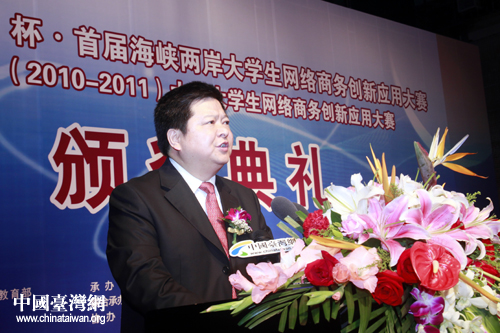 7月28日,“首屆海峽兩岸大學生網(wǎng)絡商務創(chuàng)新應用大賽”大陸賽區(qū)頒獎典禮在京舉行。國臺辦主任助理龍明彪出席頒獎典禮并致辭。(中國臺灣網(wǎng) 劉海偉 攝)