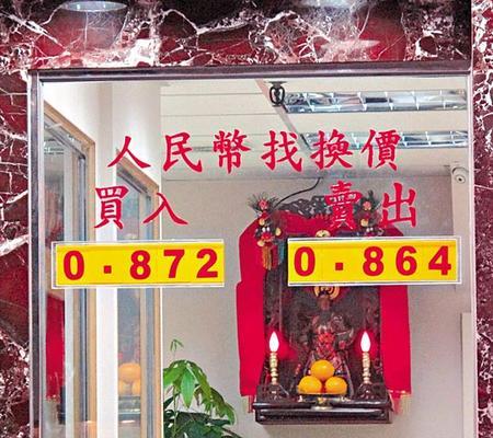 灣仔許氏兄弟找換店的一名主管昨稱,市場上有人在搶購人民幣,昨天的港元兌人民幣兌換價是每1000港元只可以兌換864元人民幣,較人民幣匯改后的高位還要兌換少2元。該主管預計下星期情況將持續。當記者前往在駱克道的恒豐兌換店要求兌換1萬元人民幣時,店員要求記者在第二天早上再回來。有深圳兌換商亦表示在港的人民幣現鈔短缺,由于很多財險留人民幣望升值,并指人民幣供應較G20會議舉行前還低。
