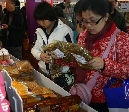 據(jù)展館內(nèi)以食品專(zhuān)區(qū)最為火爆,應(yīng)節(jié)的海味類(lèi)銷(xiāo)情大旺。圖片來(lái)源:大公報(bào)