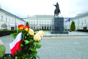 波蘭總統卡欽斯基乘坐的圖-154專機4月10日在俄羅斯西部城市斯摩棱斯克附近墜毀,機上包括波蘭總統及夫人、央行行長、三軍首長和眾位議員在內的97人無一生還,卡欽斯基原定于10日率團抵達斯摩棱斯克參加紀念“卡廷”事件70周年的活動。此次空難震驚了世界,波蘭舉國也陷入沉重悲哀之中。波蘭政府已宣布未來一周為全國悼念周。