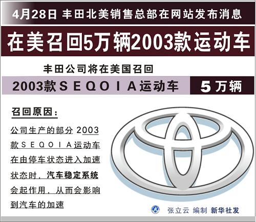 圖表:豐田宣布在美召回5萬輛2003款運動車新華社發