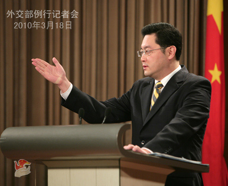 2010年3月18日,外交部發(fā)言人秦剛舉行例行記者會。