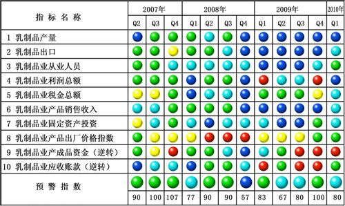 下季度,產量和利潤總額有望由本季度的“藍燈”轉為“淺藍燈”;應收賬款(逆轉)有望由本季度的“綠燈”轉為“黃燈”;其他指標燈號則有望保持不變,下季度中經乳制品產業預警指數有望進入“綠燈區”運行。