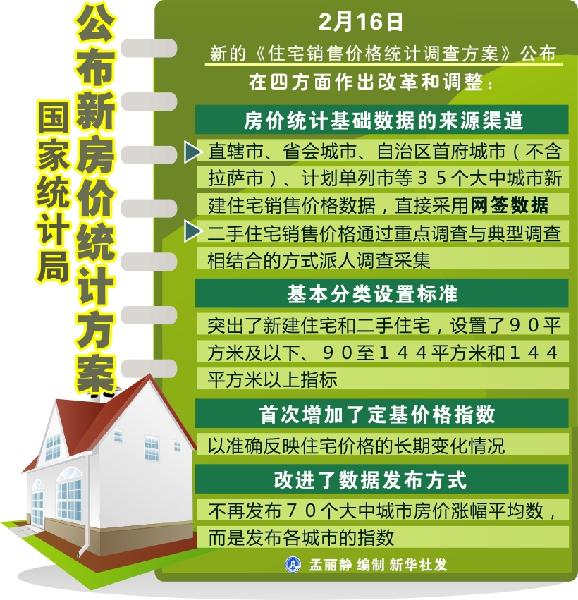 新華網北京2月18日電(記者羅宇凡、華曄迪)18日,國家統計局發布了改革后的房價統計數據,雖然沒有了平均價格同比和環比漲跌幅的數據,但從70個城市各自的價格走勢上看,今年1月份全國房價仍以“漲”為主。許多業內人士表示,從這組被普遍認為“更接近真實市場狀況”的統計數據上看,1月份可觀的房價上漲幅度,更凸顯出1月底出臺調控措施的及時性和重要性。