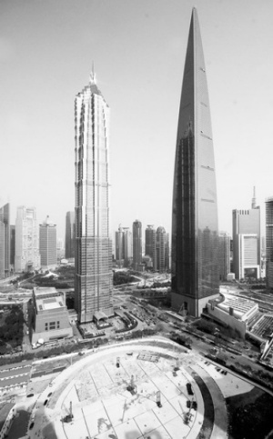 位于上海環球金融中心和金茂大廈旁的上海中心工地(圓形地基)已經準備就緒,即將正式開工(2008年11月27日攝)作為區域中心城市,上海通過產業轉移為現代服務業和先進制造業騰出空間,跨國公司總部聚集已成為上海一大景觀。新華社發