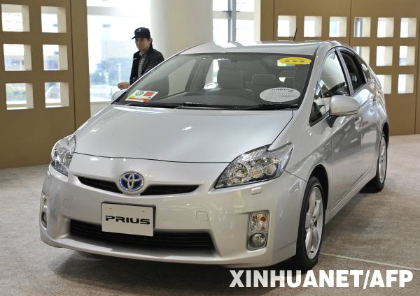 這是2月5日拍攝的日本豐田公司東京展廳里停放的一輛豐田普銳斯混合動力車。豐田公司新型環保汽車的主打產品、目前在日本最暢銷的混合動力車普銳斯日前被曝剎車系統出現問題。據日本媒體5日報道,豐田已經決定在日美兩大市場召回該車,總量預計為27萬輛。新華社/法新