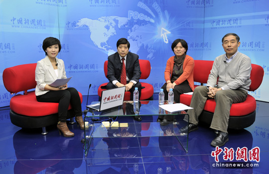 商務(wù)部國際貿(mào)易經(jīng)濟(jì)合作研究院院長霍建國(左二),商務(wù)部國際貿(mào)易經(jīng)濟(jì)合作研究院世界經(jīng)濟(jì)貿(mào)易研究部主任梁艷芬(左三),商務(wù)部國際貿(mào)易經(jīng)濟(jì)合作研究院研究員、中國對外貿(mào)易研究部副主任李健(右一)做客中新網(wǎng)。